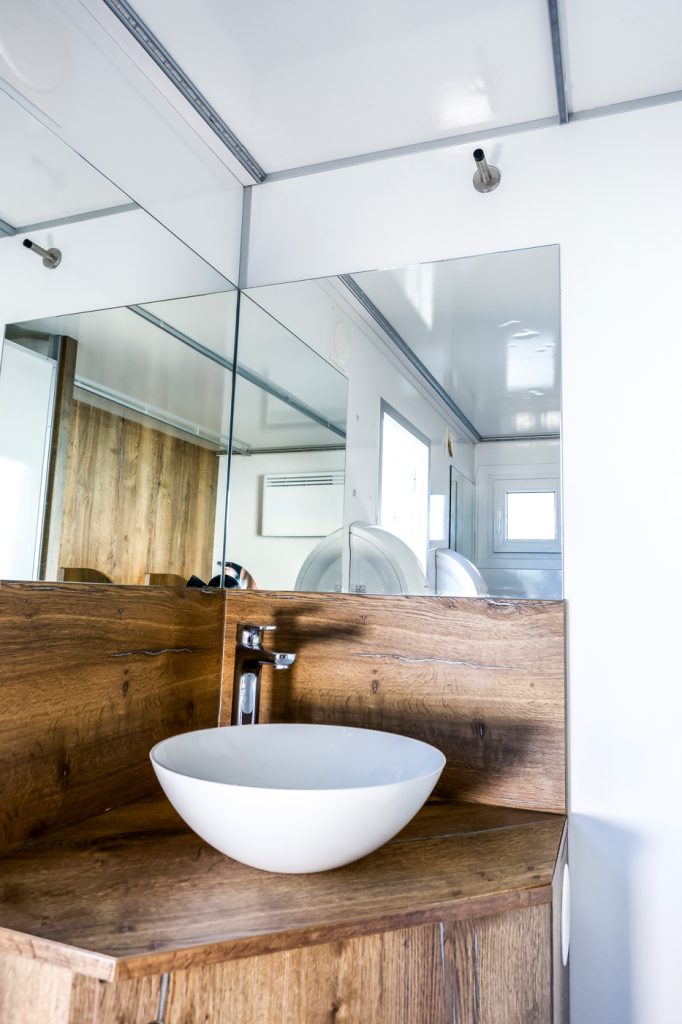 Bei 400 Volt Stromanschluss ist Licht, Warmwasser sowie Außenbeleuchtung möglich.